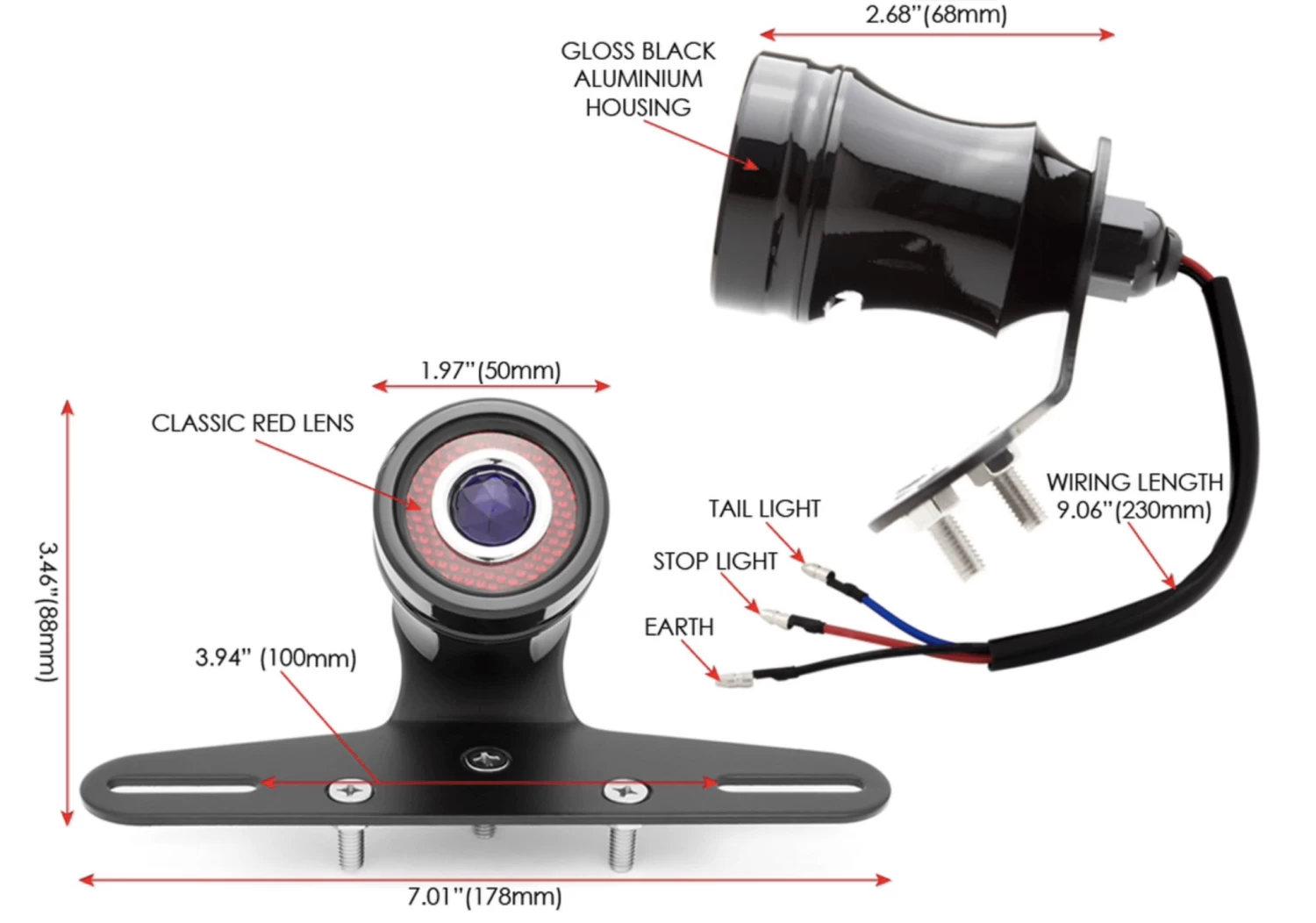 Vintage Chopper Led Taillight Black.